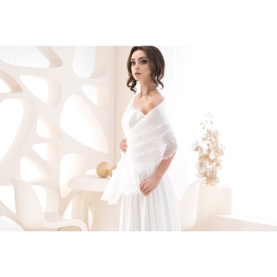Conçu en organza vaporeux, il se pose délicatement sur vos épaules comme une brise d’été.