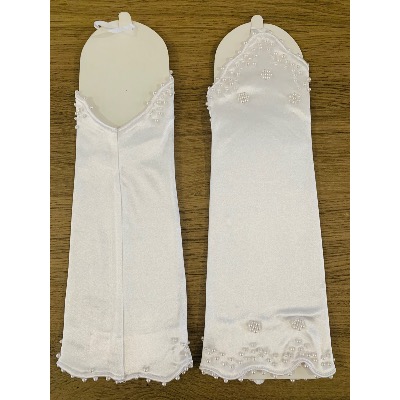 Gants ou mitaine de mariage blanc satiné avec perles